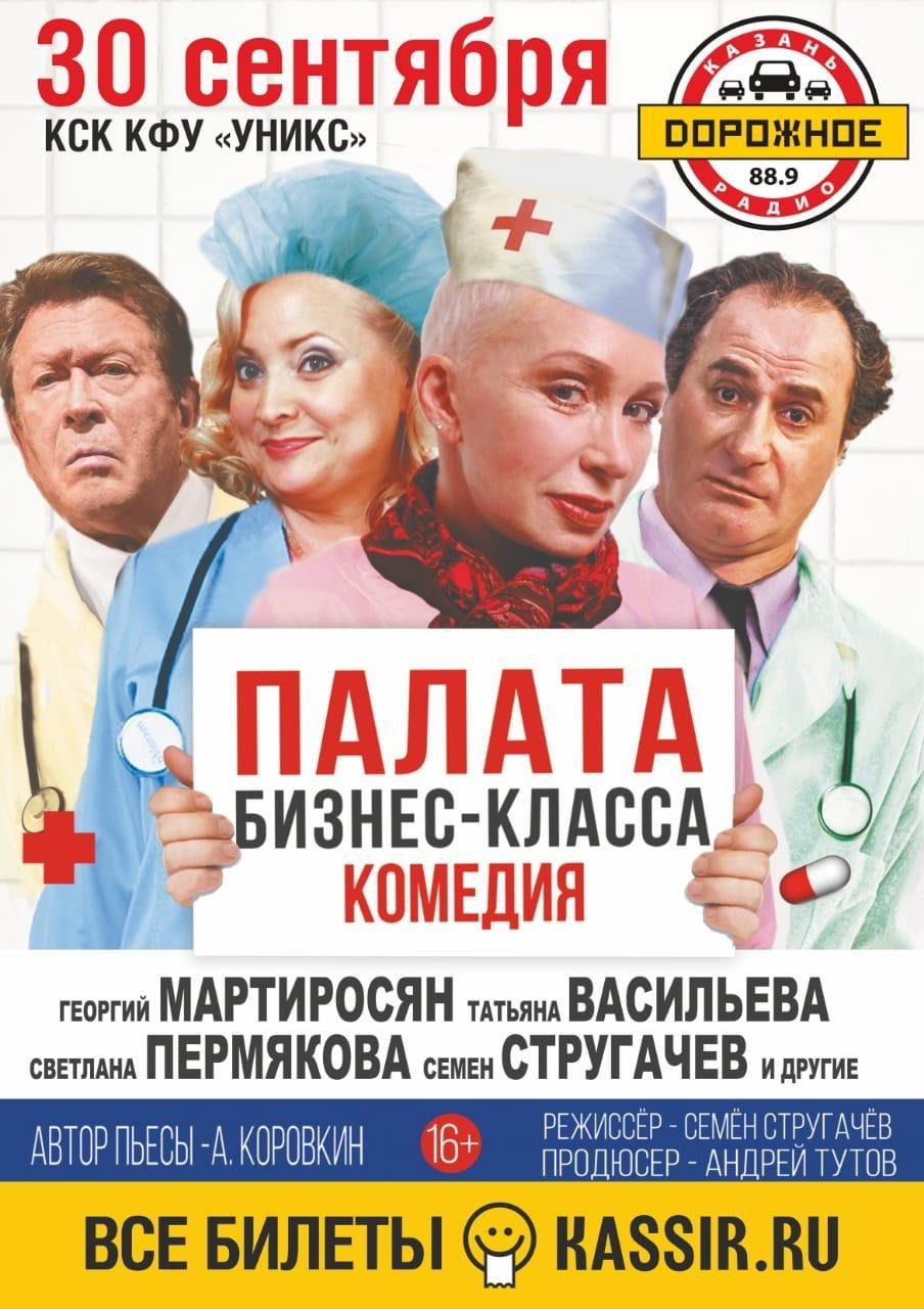 Кризис, эпидемия и холод вгоняют в тоску и хворь? Предлагаем самый мощный антидепрессант сезона — билет на новую комедию-фарс «Палата бизнес-класса» от драматурга Александра Коровкина, автора сценария к популярным телесериалам «Марш Турецкого», «Бедная Настя» и других. Два часа заразительного хохота и полное удовлетворение от торжества справедливости — этого так не хватает нам в повседневной жизни! Не пейте таблетки, покупайте билеты на спектакль!