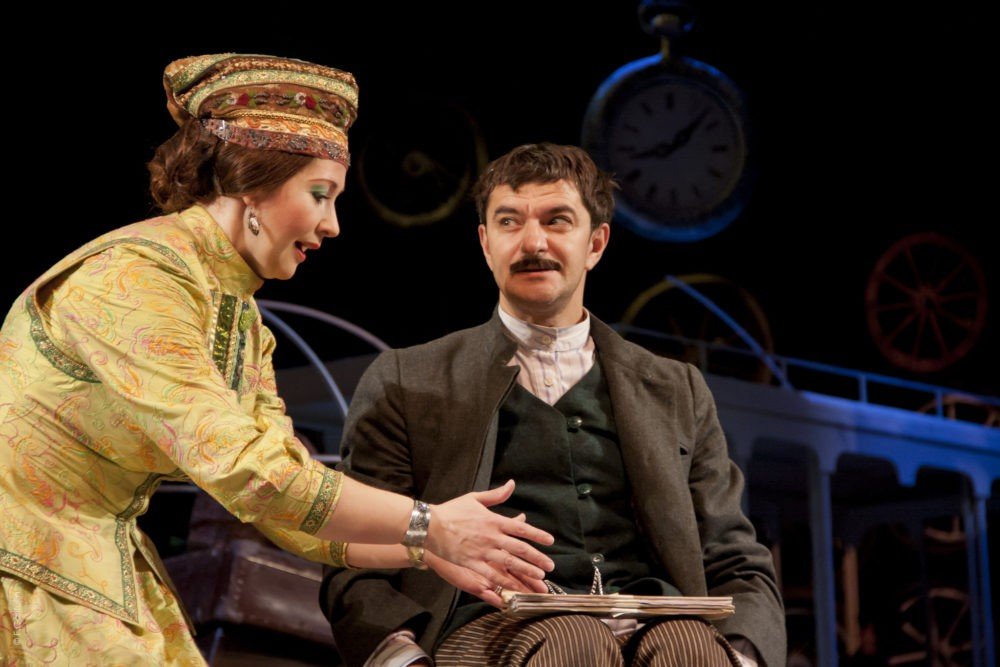 Французского и татарского авторов роднят подчеркнутая театральность, реплики в зал, развернутые монологи, карнавальный флёр комедии положений, словесная эквилибристика… и затаенная грусть, возникающая на фоне пылких страстей. Именно по этому пути пошел режиссер спектакля Фарид Бикчантаев. Его «Банкрот» не только и не столько рассказ об одной счастливо обернувшейся афере, но о духе времени, о татарском ренессансе, который словно мощный гейзер вытолкнул на поверхность истории не только поэтов и мыслителей, ученых и художников, изобретателей и политиков, но и разношерстную толпу авантюристов и интриганов всех мастей.